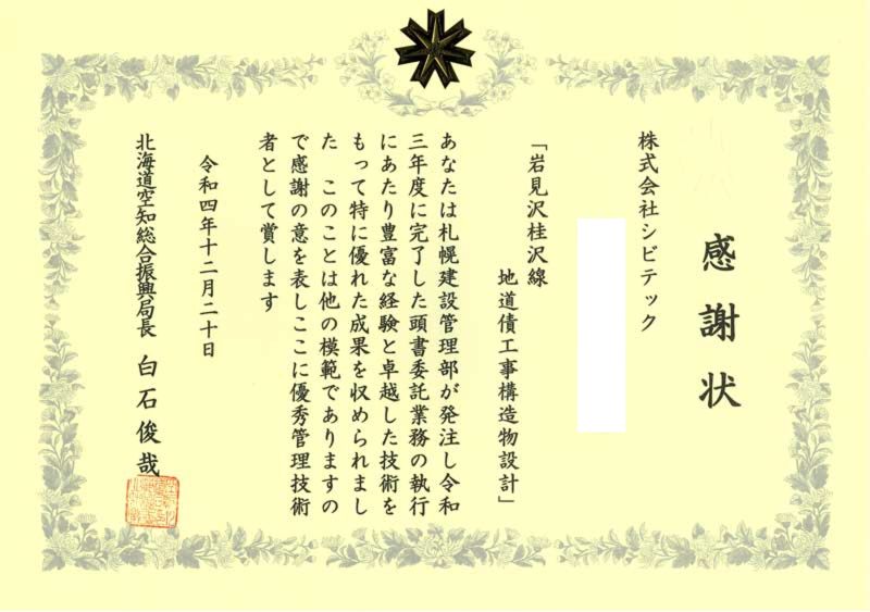 このたび、札幌建設管理部の「令和4年度優秀管理技術者表彰」において、特に優秀と評価され、当社が担当した業務が見事受賞に輝きました。