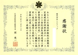このたび当社は、道建設部の令和6年度建設部工事等優秀者表彰(技術資料作成委託部門)において、知事感謝状を受領いたしました。