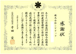 なお、表彰式は12月10日に小樽建設管理部で執り行われました。